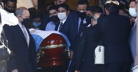 Una telecamera da lontano ha ripreso senza audio il momento di intimità, dopo una giornata segnata dalle lacrime, le grida ed i cori di decine di migliaia di persone che lo hanno salutato dentro e fuori della Casa Rosada presidenziale, in uno scenario non privo di violenza. La cerimonia si è conclusa con un lungo applauso. Maradona è stato seppellito accanto al padre Don Diego e alla madre Doña Tota.