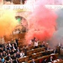Durante la sessione parlamentare odierna sono stati lanciati dei fumogeni dai banchi di opposizione.