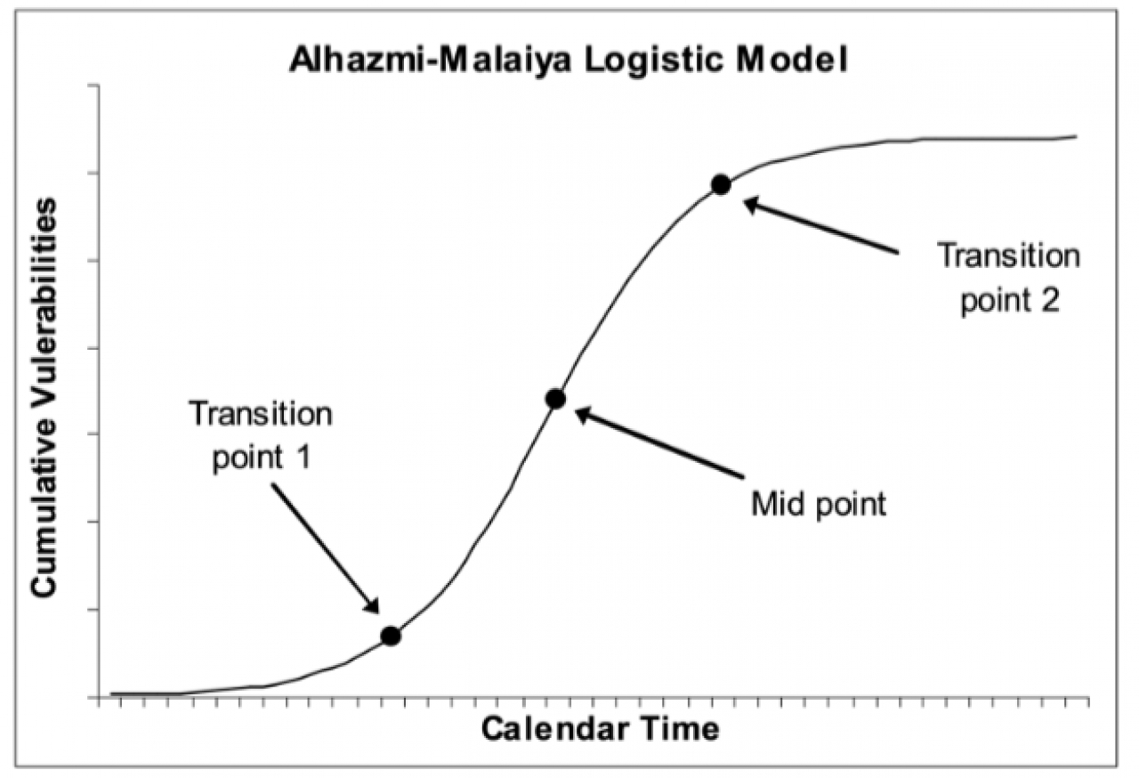 - Fase 2: il software è rimpiazzato da un concorrente e si avvia verso la fine-vita. Complice la minore attenzione verso il prodotto e la sua maggiore maturità, il numero di vulnerabilità riportate si riduce gradualmente, fino a raggiungere un valore nullo.