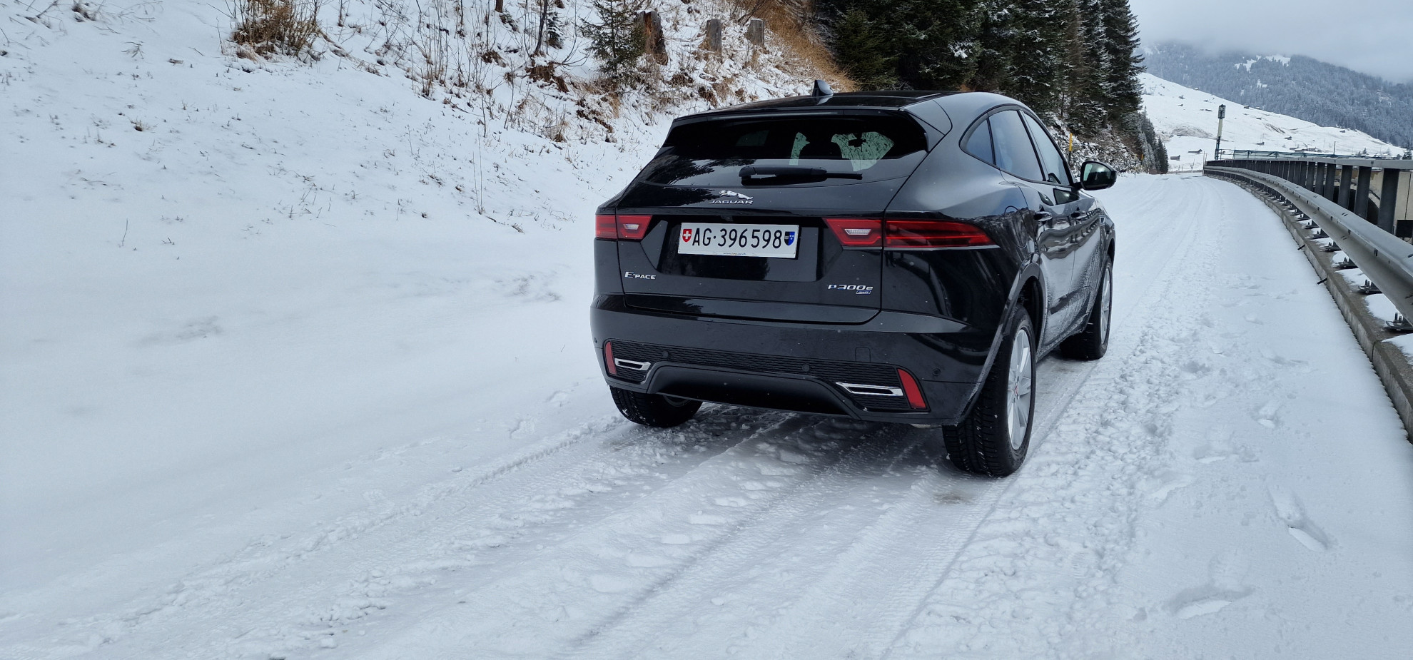Ritiriamo la vettura dal concessionario, noto immediatamente che, nonostante le dimensioni da SUV compatto, la Jaguar E-Pace offre un buon livello di abitabilità interna e una qualità degli interni degni della casa. Partiamo in modalità ECO per prendere un po' le misure. L'ibrido si fa sentire anche in questa modalità. La guida è piacevole, lo sterzo è preciso e l'auto è confortevole. In città è semplice da manovrare anche se è piuttosto larga. Percorsi i primi chilometri prendo un po' la mano e passo alla modalità Dynamic e si nota immediatamente la differenza di prestazioni, lo sterzo più preciso e gli ammortizzatori non male. La proviamo su una strada piena di curve e alziamo un po' il ritmo per vedere come reagisce. Molto bene anche se in curva bisogna fare un po' di attenzione perché il peso influisce negativamente sugli ammortizzatori e tende ad avere un po' di rollio. Ma è chiaro che la E-Pace non è un auto da gara e con una guida normale reagisce molto bene. Aiuta, va riconosciuto, la presenza della trazione integrale e dalla modalità di guida a lei connessa (la Adaptive Surface Response, capace di riconoscere il tipo di fondo tra neve, bagnato e ghiaccio). Ho percorso un pezzo di strada in Grigioni con il fondo di strada completamente innevato e non ho avuto alcun problema né in salita né in discesa, nonostante il peso. La E-Pace ha superato a pieni voti la prova sulla neve. Durante il viaggio, nonostante i diversi stop per foto e video, abbiamo apprezzato a pieno la comodità dei sedili e il sound dell'impianto Meridian.