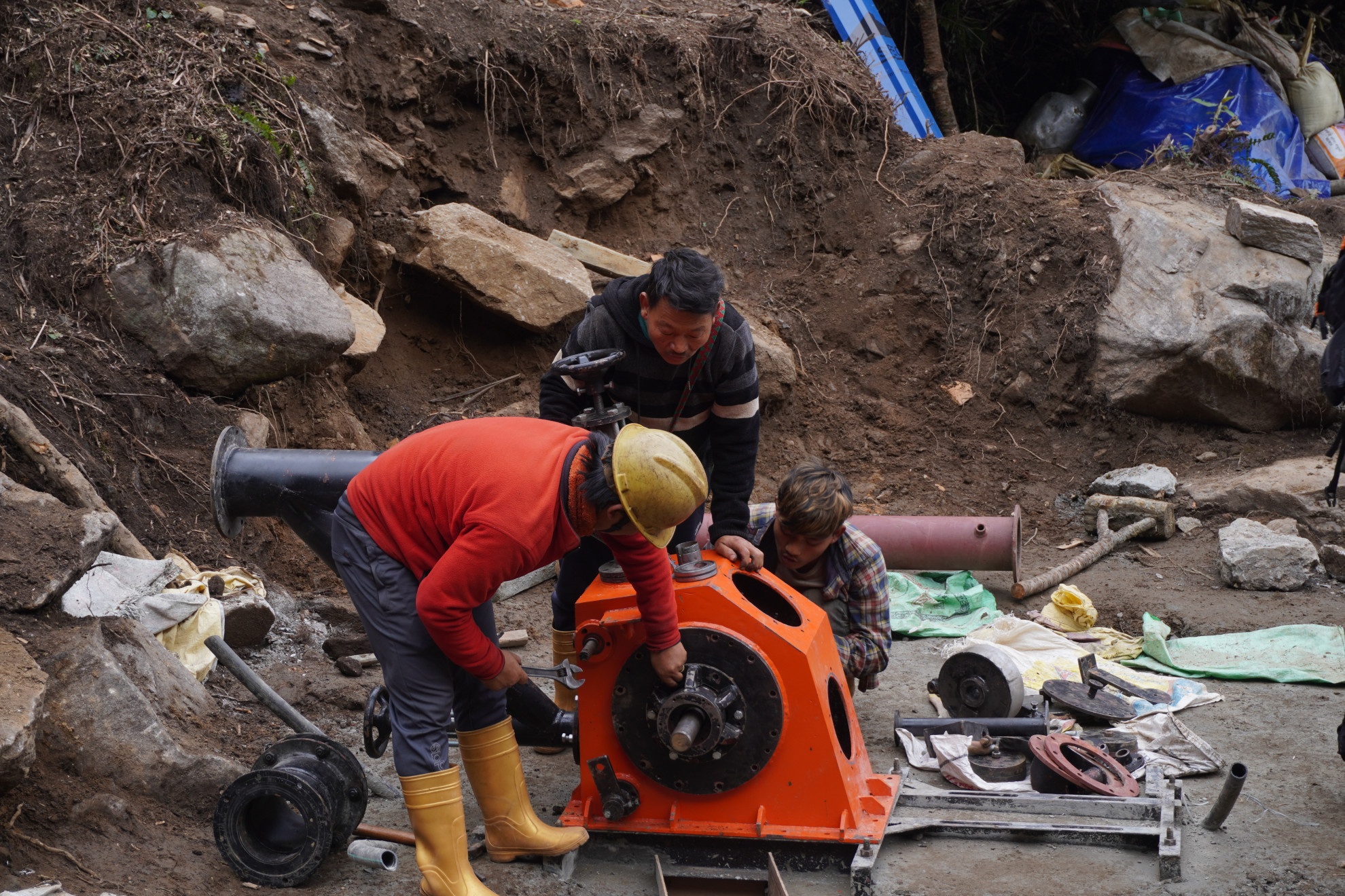 Impianto idroelettrico - Nel concreto? Portare l’elettricità - in maniera sostenibile e immediata - in quegli otto villaggi, migliorando nel contempo la qualità della vita agli abitanti. Come? Con un piccolo impianto idroelettrico che sfrutta l'acqua da una sorgente vicina al fiume Nivarey. «Con l'aiuto di un ingegnere locale e dei cittadini del posto abbiamo utilizzato la sorgente per creare un bacino artificiale di captazione dell'acqua (una sorta di vasca di cemento, ndr) che contenesse qualche migliaio di litri», ci spiega Nicola. «Da lì, sono stati installati dei tubi per trasportare l’acqua dal bacino fino alla centrale, dove sono collocate la turbina e il generatore».